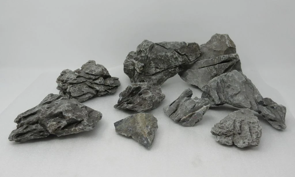 Karstiges, graues Naturgestein für puristische Aufbauten im Aquarium mit asiatischem Flair. Sehr schön geformtes schweres Gestein. Optimal zur Gestaltung von Bergen und Hügeln im Aquarium. Mit diesem Naturgestein lassen sich schnell und einfach wunderschöne Szenerien im Aquarium gestalten wie sie aus den japanischen Aquarien von Takashi Amano bekannt sind. Das auch als Messerstein bezeichnete Gestein sorgt dabei vor allem in Verbindung mit Wasserpflanzen für ein traumhaftes Aussehen des Aquariums.