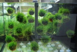 Die Bälle sollten regelmäßig zurückgeschnitten werden, so werden Sie besonders kompakt und behalten ihre attraktive Form. Die freischwebende Kugel dient als Spiel und Weideplatz für die Garnelen und deren Nachwuchs.
