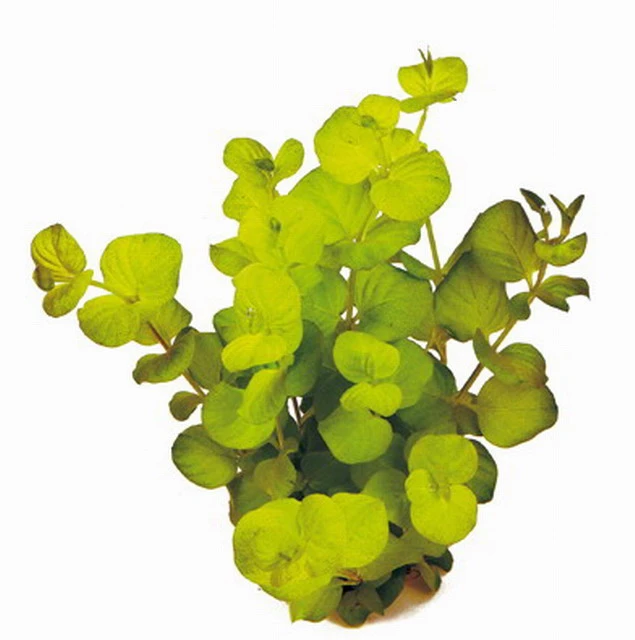 Lysimachia nummularia „Aurea“ ist eine hübsche Stengelpflanze mit ovalen, hellgrünen Blättern. Die Farbe kann bei guter Beleuchtung bis ins goldfarbene gehen.Sie braucht viel Licht aber ist ansonsten anspruchslos. Man kann sie als Solitärpflanze setzten oder in einer kleinen Gruppe pflanzen. Sie eignet sich am besten für den Mittel- oder Hintergrund.