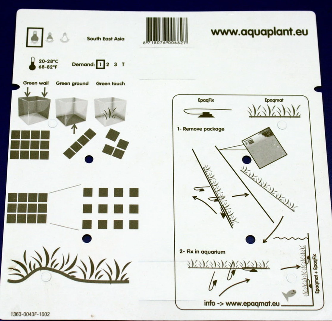 Egel ob als „Green wall“ an der Rückwand des Aquariums, als „Green floor“ in einem großen Bereich im Vordergrund oder als „Green touch“ aufgeteilt in mehren kleinen Gruppen – die neue Form ist immer ein echter Hingucker. Das Vlies aud dem die Pflanze fest aufgewachsen ist kann mit einer Schere in jede beliebige Form geschnitten werden und die Pflanzenmatte so schnell und einfach an Ihre Erfordernissen angepasst werden.