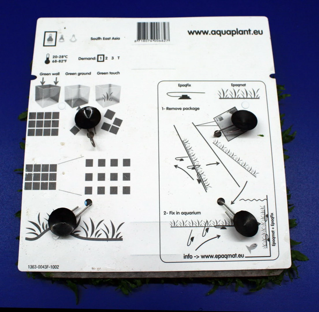 Diese volle und extrem große Pflanzen-Matte „Green-Wall“ ermöglichte es Ihnen im Handumdrehen das Aquarium in einen grünen Urwald zu verwandeln. Auf der Rückseite der Pflanzenmatte befindet sich ein Vlies mit 4 kräftigen Saugern zur Befestigung der Matte.