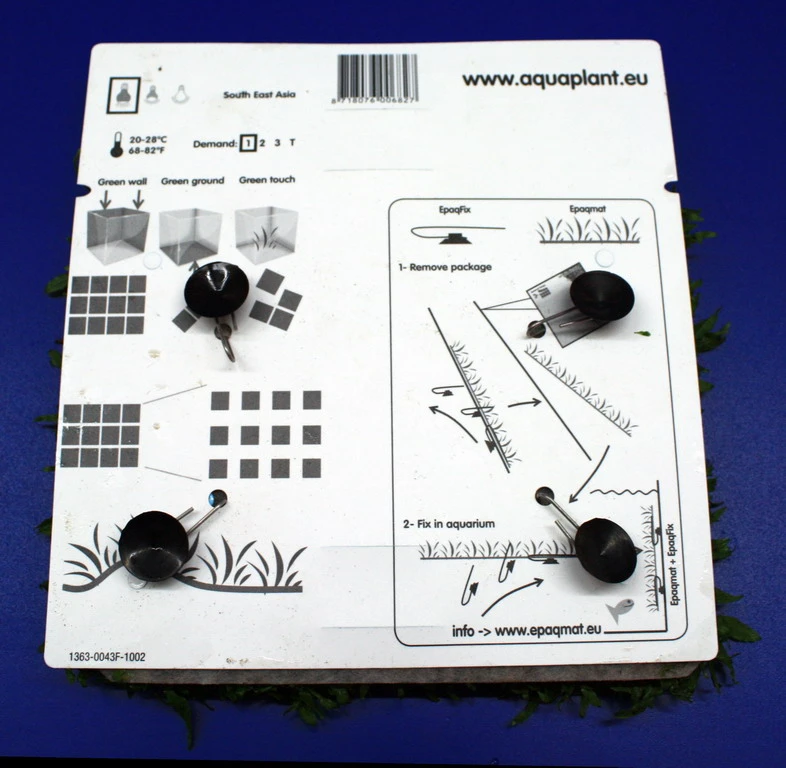 Diese volle und extrem große Pflanzen-Matte Green-Wall ermöglichte es Ihnen im Handumdrehen das Aquarium in einen grünen Urwald zu verwandeln. Auf der Rückseite der Pflanzenmatte befindet sich ein Vlies mit 4 kräftigen Saugern zur Befestigung der Matte.