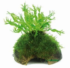 Die Pflanze ist auf der Höhle aufgebunden. Wenn die Pflanzen angewachsen sind, kann die Schnur entfernt werden. Die Pflanze kann mit der Höhle sehr schnell umgesetzt oder aus dem Aquarium entnommen werden. Also sehr praktisch beim Herausfangen von Tieren aus dem Aquarium – hervorragend geeignet für Zuchtbecken. Die Pflanze wird nicht von pflanzenfressenden Fischen gefressen und ist damit gut für Barschbecken geeignet.