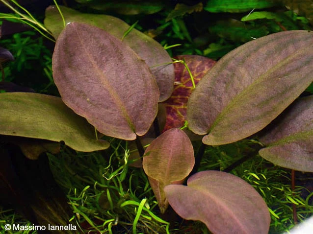 Diese Pflanze stammt ursprünglich aus Indien und erinnert an eine mittelgroße, breitblättrige Cryptocoryne.