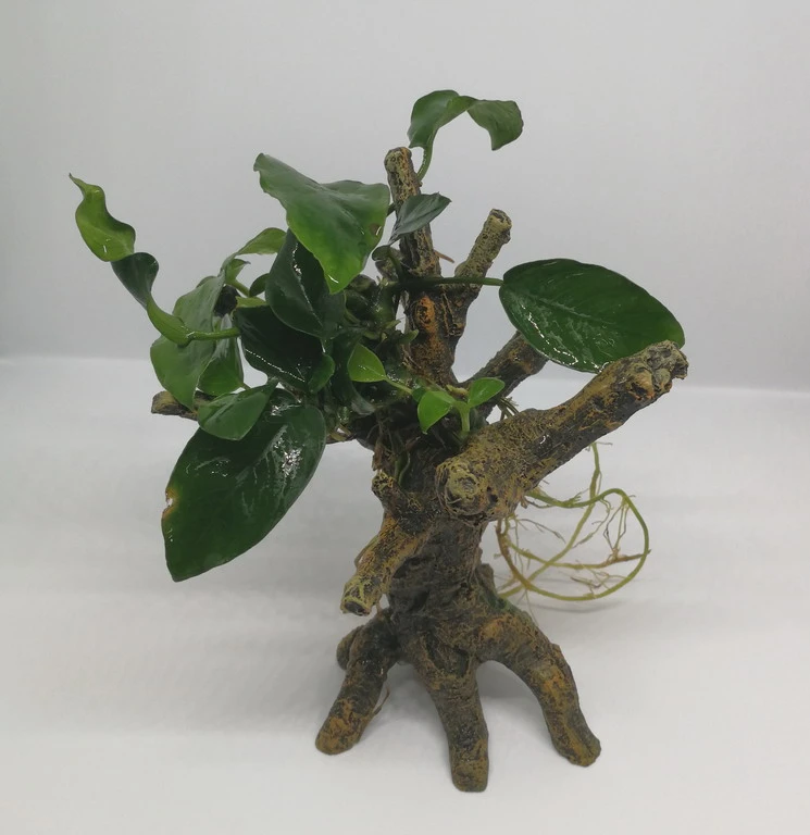 Speerblatt-Bäumchen mit Baumkrone / Urwaldbaum KLEIN mit Anubia nana