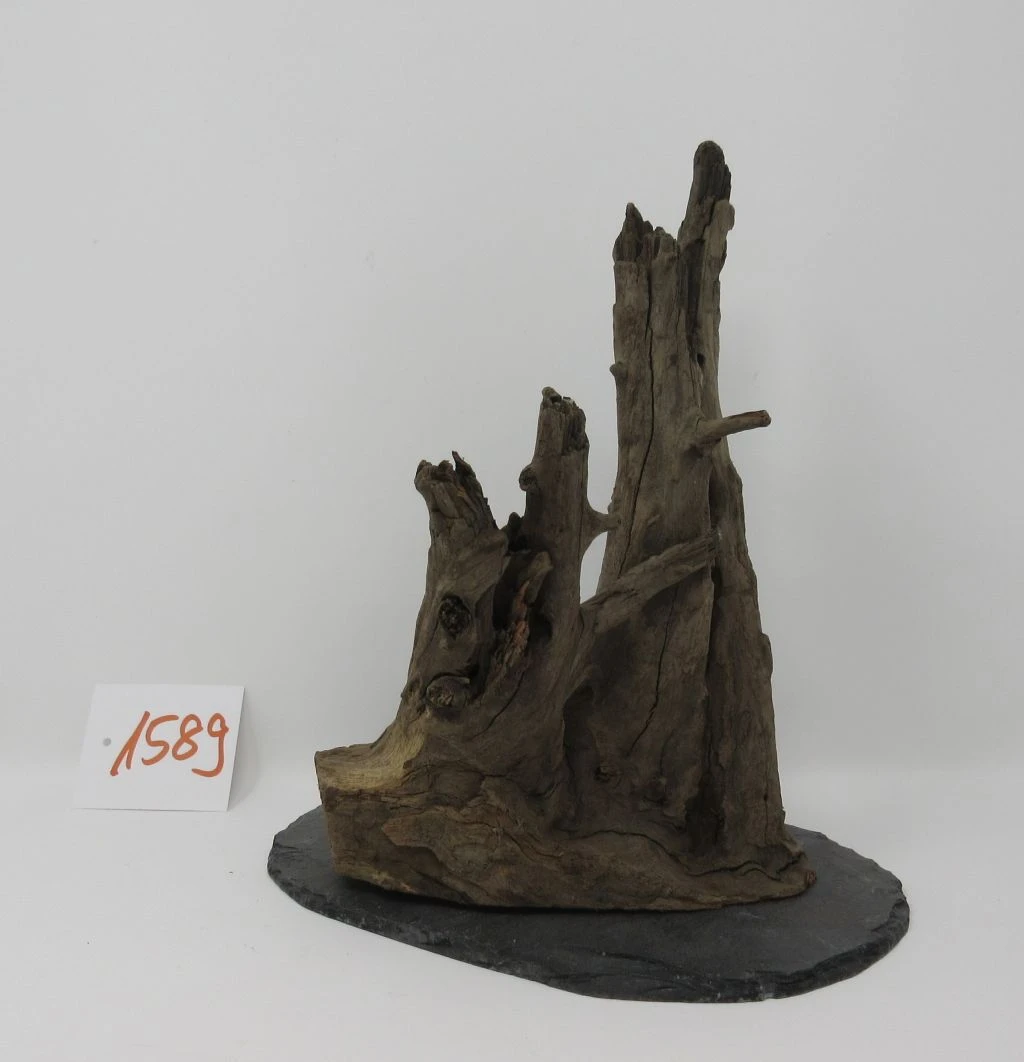 Die Wurzel ist für einen stabilen Stand auf einer Schieferplatte verschraubt. Die Schieferplatte kann bei Bedarf durch lösen der rostfreien Edelstahlschraube entfernt werden.